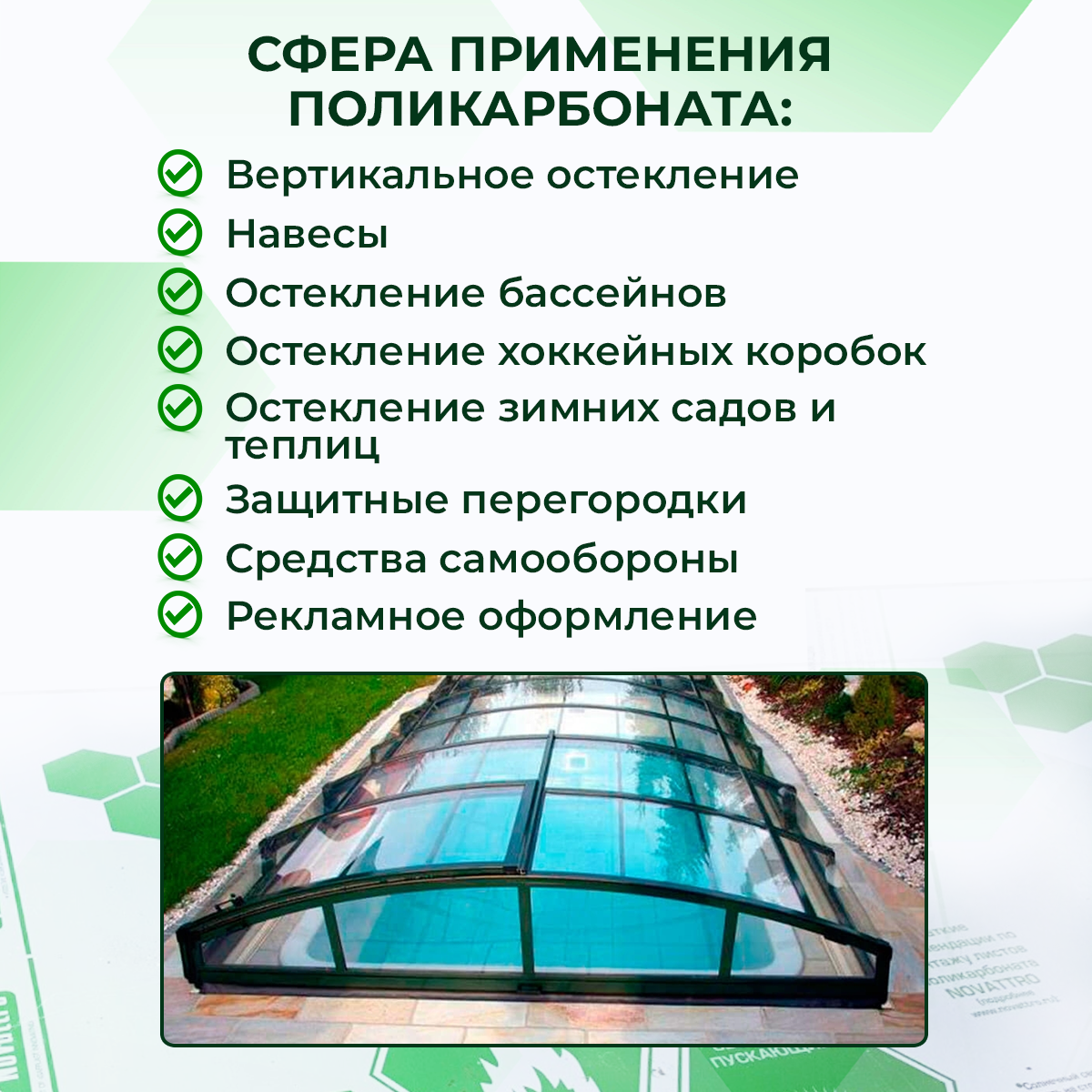 Основные области применения полимерного стекла Novattro