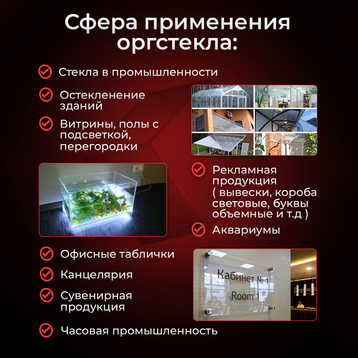 Применение Оргстекла PLEXIGLAS 12 мм 0,5х1 м