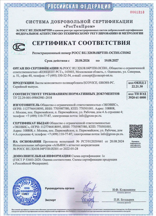 Свойства монолитного поликарбоната GROSS-PC 5 мм: